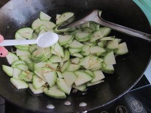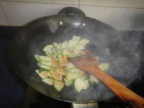 3. 锅中留少许油,下角瓜片翻炒至断生。